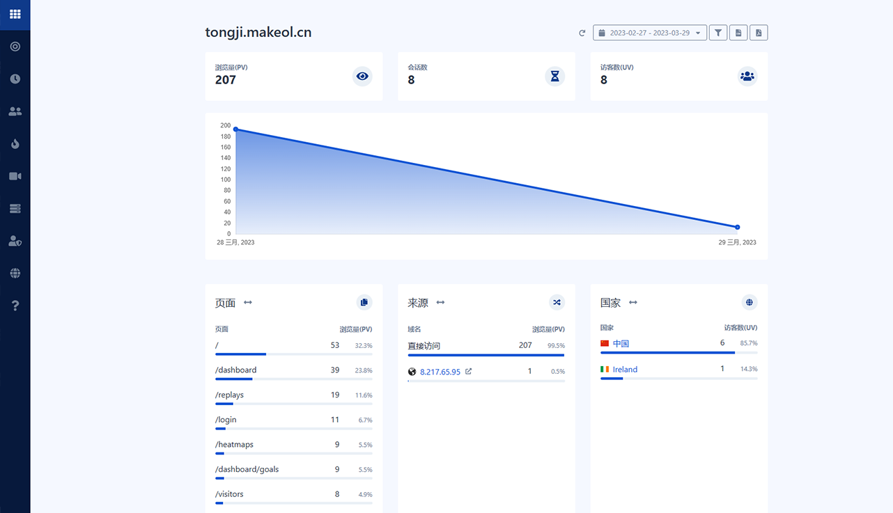 简单友好的统计分析,跟踪用户的访问动态、重播会话、收集热图等
